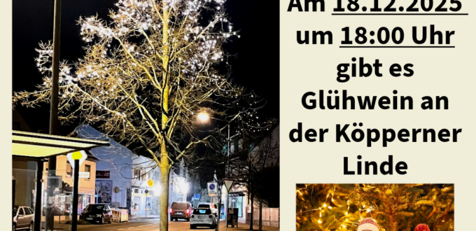 Donnerstag, 18.12.2025 um 18:00 Uhr wird es an der Köpperner Linde wieder gemütlich. Wir erinnern an das Jahr 2009 als mit Hilfe der Spenden unseres Vereins eine größere Linde gepflanzt wurde.